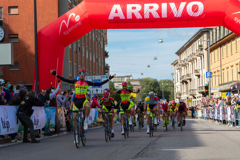Sotto lo striscione d’arrivo posto davanti al Bar Pasticceria Dondeo di Fabiano Frontali, ha sfrecciato per primo il modenese di San Felice Sul Panaro Francesco Calì alla sua quinta vittoria nell’anno e reduce dal successo di domenica scorsa in un’altra gara nazionale a Treviso. Egli ha battuto in volata il compagno di squadra Giosuè Epis e terzo posto per Alessandro Romele.
