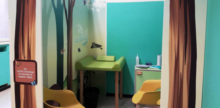 Lo spazio allattamento presso il Servizio di Neuropsichiatria Infantile e dell’Adolescenza è intitolato alla Signora Tullia, madre di uno dei soci fondatori di ABIO Cremona, in segno di riconoscenza alla Associazione per aver finanziato la realizzazione degli spazi dedicati e l’acquisto degli arredi.