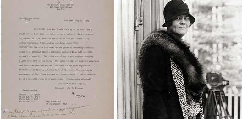 La Pratt acquistò e ricevette il violino alla fine degli anni ’30, lo strumento rimarrà con lei per sempre fino alla sua morte, avvenuta nel 1965, quando verrà donato alla collezione in forza alla Orchestra Filarmonica di New York città per la quale, anche dopo il suo rivoluzionario mandato alla Camera dei Rappresentanti, la “suffragetta” continuò il suo lavoro impostando il progetto di valorizzazione dei parchi pubblici e lo sviluppo dei collegamenti con le aree più a nord della metropoli. Grazie alla Pratt prende vita un altro magari piccolo ma significativo tributo alla storia cremonese, fortemente voluto da una rivoluzionaria emancipatrice della storia statunitense.