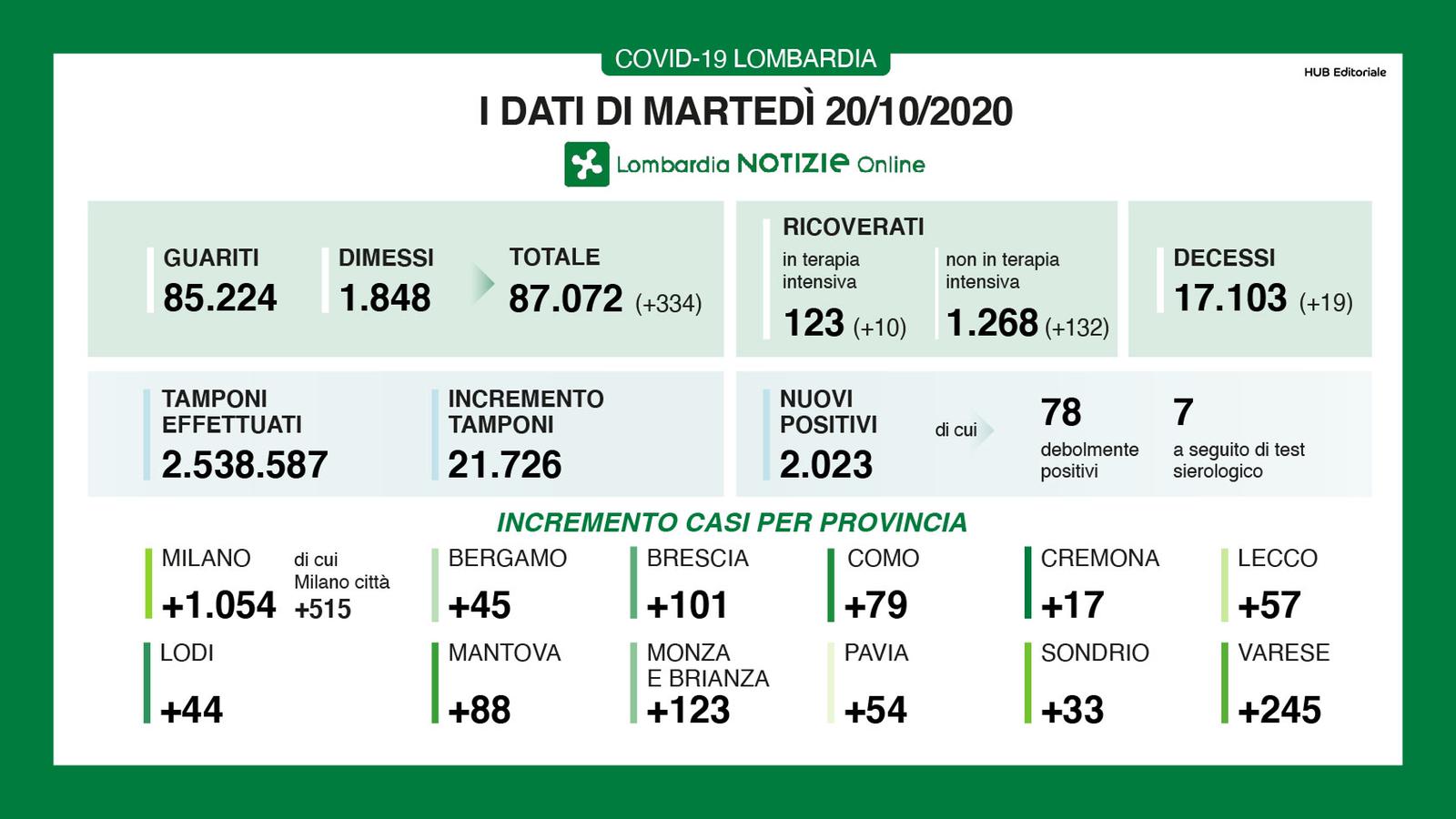 Covid: più di 10.000 contagi in Italia, 2.023 in Lombardia, 17 in provincia di Cremona