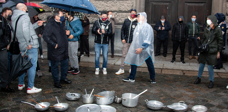 Hanno fatto tanto rumore, nel vero senso del termine, gli esercenti cremonesi, baristi e ristoratori, che si sono radunati davanti alla prefettura con pentole e coperchi per manifestare contro l’ultimo Dcpm, che impone la chiusura alle 18. Un centinaio di persone che hanno voluto manifestare contro una misura che naturalmente incontra il dissenso di chi ogni giorno lavora in questo settore. “Ci siamo adeguati alle normative anti-covid e ora non ci permettono di lavorare” evidenzia uno dei portavoce, Gianluca Pezzoni, dell’Osteria Aporti. “Protestiamo per i nostri diritti e per quelli dei nostri dipendenti”.