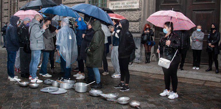 Dpcm, protesta esercenti davanti alla Prefettura con pentole e coperchi