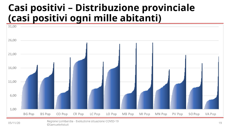 La nostra provincia rimane anche una di quelle con il maggior numero complessivo di casi ogni mille abitanti. Non è tutto: sempre secondo le tabelle pubblicate da Astuti, il numero di casi settimanali sta avvicinandosi a quello del picco di marzo: sono stati infatti 1.006 nell’ultima settimana (dato aggiornato a giovedì 5 novembre).