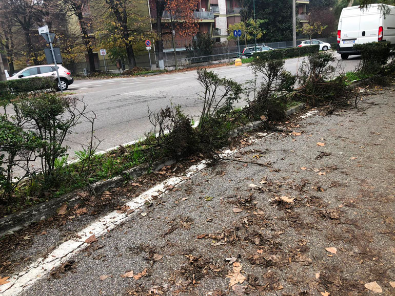 AGGIORNAMENTO – Alcune delle siepi che costeggiano viale Po, dividendo la sede stradale dalla zona ciclo-pedonale, versano in condizioni assolutamente pietose. A segnalarlo alcuni residenti, che hanno notato, nel tratto finale della strada, gli arbusti rovinati, schiacciati, con rami spezzati e pieni di spazi vuoti.