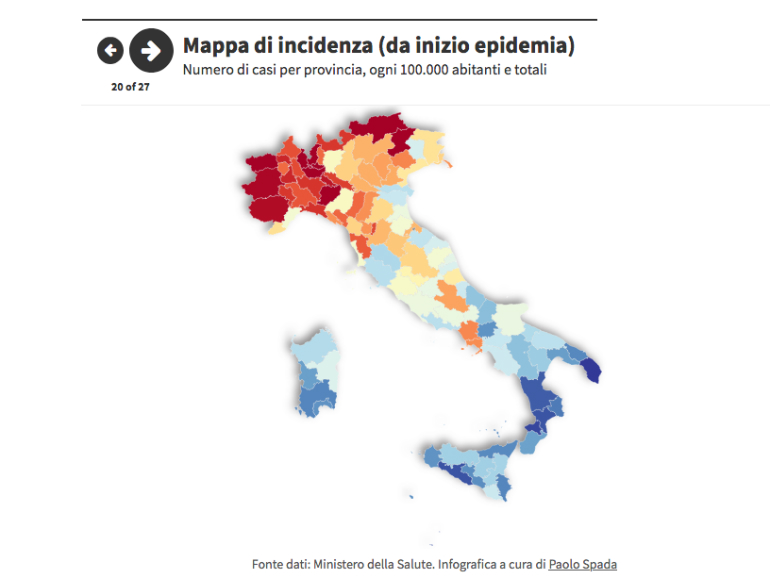 Questi i dati che emergono nelle elaborazioni quotidiane presentate dal dottor Paolo Spada, chirurgo vascolare dell’Humanitas Reserarch Hospital di Milano, sul suo sito ‘Il Segnalatore‘, nell’ambito del progetto ‘Pillole di ottimismo‘, pagina Facebook di divulgazione molto seguita. Report che conferma come i territori più drammaticamente toccati dalla prima ondata della pandemia stanno reagendo bene a questa seconda ondata.