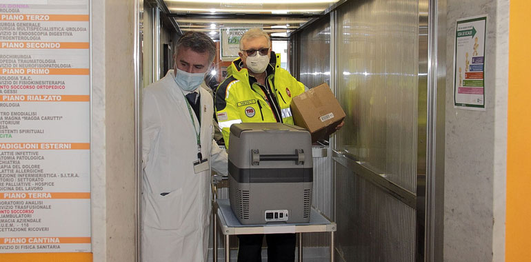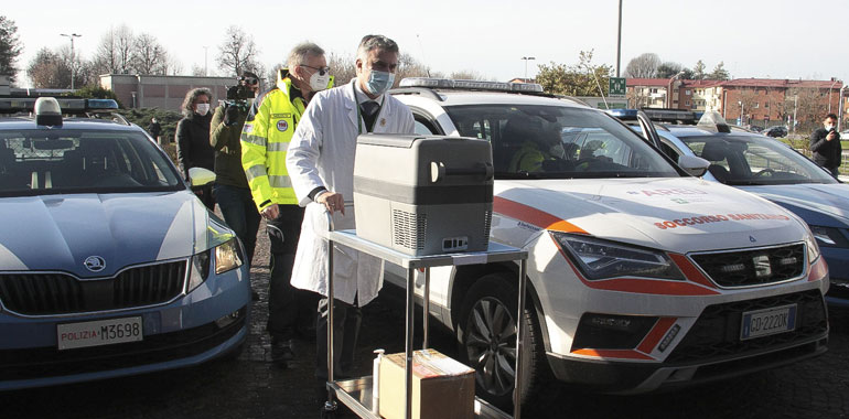 Il viaggio del vaccino dal casello dell'A21 di Cremona fino all'ospedale - LE FOTO