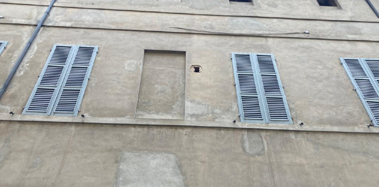 Beata Vergine, distacco di intonaco e cornicione pericolante. Transenne