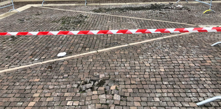 Le buche nell’asfalto che si aprono dopo il passaggio degli spazzaneve sono probabilmente inevitabili, ma per la più importante piazza cittadina sarebbe stato opportuno operare con una maggiore attenzione.