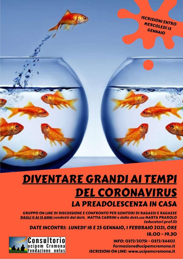Il Consultorio Ucipem Cremona continua “ad accompagnare le famiglie, offrendo ai genitori percorsi di riflessione e confronto”. La finalità è quella di “approfondire e condividere in gruppo e attraverso il gruppo alcuni pensieri, vissuti ed idee inerenti al ruolo genitoriale in questo tempo di emergenza e riorganizzazione”. Per questo è stato organizzato un gruppo online di discussione e confronto per genitori di ragazze e ragazzi tra gli 11 e i 13 anni dal titolo ’Diventare grandi ai tempi del Coronavirus – La preadolescenza in casa’.