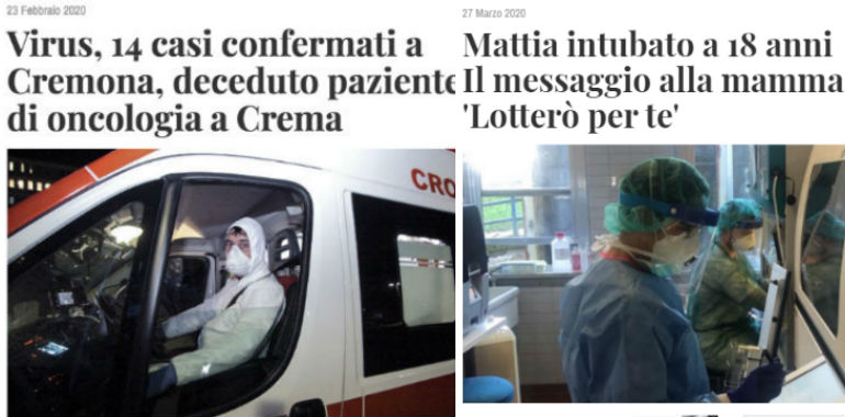 Seguono altre due notizie che ci riportano indietro: 22 febbraio, la Regione conferma due contagi in provincia di Cremona; nella stessa data, salgono a 5 i casi confermati ricoverati a Cremona.