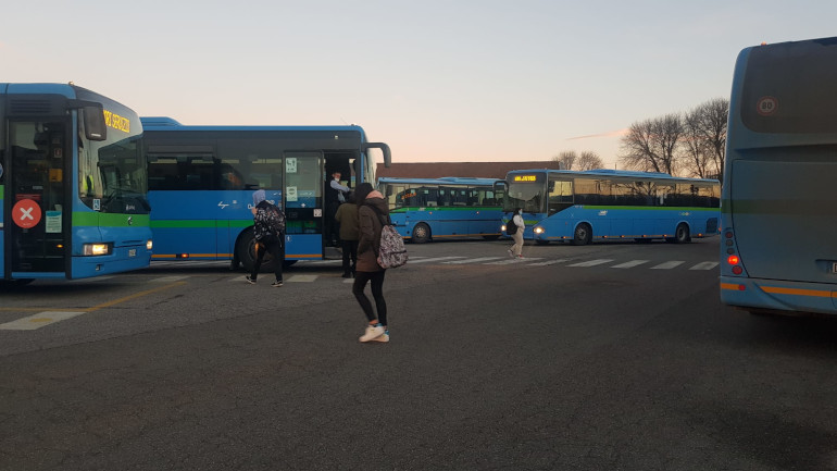 Sguardi quasi stupiti dietro le mascherine, occhi sorridenti, qualche abbraccio: la stazione dei pullman è tornata a riempirsi di studenti, a fronte della riapertura della maggior parte delle scuole cremonesi, che hanno preferito dilazionare di un giorno il ritorno sui banchi, come consentito dalla normativa.