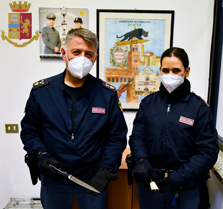 I poliziotti si sono subito messi sulle tracce della persona segnalata, rintracciata poco dopo in via degli Orti Romani, nei pressi del parco. Nel cestino della bicicletta aveva un coltello da cucina e un collo di bottiglia.