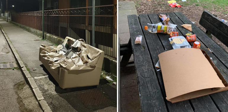 Inciviltà e degrado in quartiere Po: le segnalazioni che pervengono da varie parti del quartiere sono molteplici, a partire dalla zona del parco Sartori, dove spesso gruppi di ragazzi si fermano a bivaccare su tavoli e panchine. L’ennesimo episodio la notte scorsa, quando un gruppo di ignoti ha occupato tavoli e panche accanto all’asilo, lasciando, il giorno dopo, gli spazi ingombri di spazzatura.