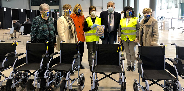 Consegnate questa mattina presso l’Hub vaccinale dell’Asst di Cremona – allestito nel padiglione 1 della Fiera di Cremona – otto sedie a rotelle donate dalle socie dell’Inner Well Cremona.