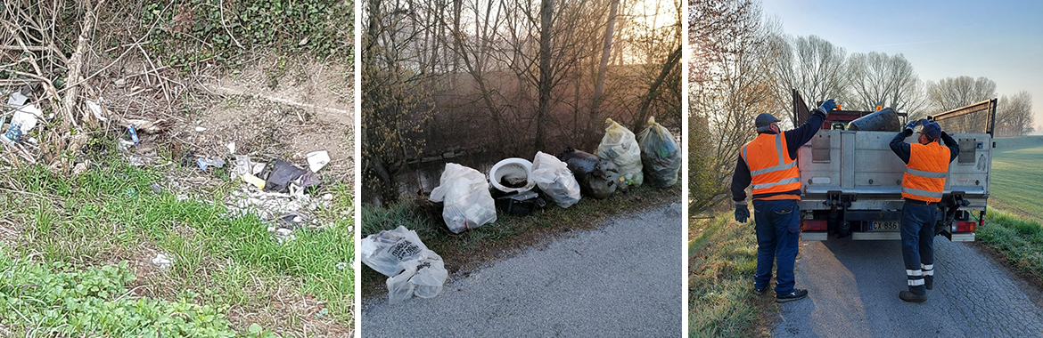 Via Boscone, volontari e addetti Linea Gestione recuperano rifiuti abbandonati