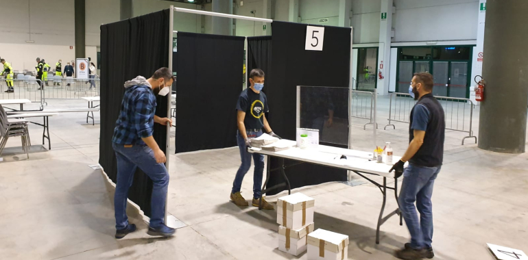 Il lavoro è iniziato nella tarda serata di ieri, sabato 13 marzo, non appena si è conlcusa la lunga giornata per vaccinare i cremonesi. In totale da lunedì 8 marzo ad oggi nel padiglione 1 della Fiera sono stati in servizio più di 60 operatori e 30 volontari al giorno e 5.500 cittadini che hanno ricevuto il vaccino.