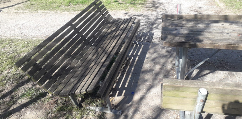 Quella ‘panchina vagante’ che “i ragazzi se la portano qua e là dove vogliono” è solo uno dei segnali di trascuratezza di questa zona. Molte altre panchine, tutte di vecchia data, risultano semidivelte dal terreno; le assi dei tavoli completamente mancanti oppure bruciacchiate. “Vengono qui i ragazzi e fanno di tutto”, si lamenta un uomo che sta facendo una passeggiata con il cane, appena uscito dall’area recintata per lo sgambamento. “Qui hanno distrutto parte della recinzione, mentre da quest’altra parte era caduto un albero che aveva demolito la rete. Ora è stata sistemata alla meno peggio, ma avrebbe bisogno di essere sostituita”. Il timore è che i cani possano facilmente uscire, proprio a ridosso della zona giochi per i bambini.