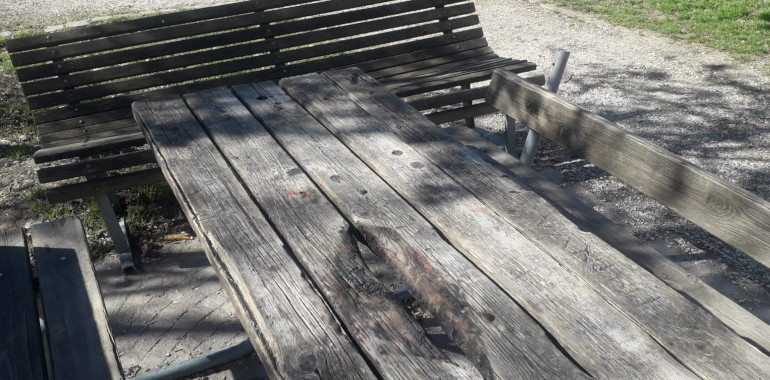 Quella ‘panchina vagante’ che “i ragazzi se la portano qua e là dove vogliono” è solo uno dei segnali di trascuratezza di questa zona. Molte altre panchine, tutte di vecchia data, risultano semidivelte dal terreno; le assi dei tavoli completamente mancanti oppure bruciacchiate. “Vengono qui i ragazzi e fanno di tutto”, si lamenta un uomo che sta facendo una passeggiata con il cane, appena uscito dall’area recintata per lo sgambamento. “Qui hanno distrutto parte della recinzione, mentre da quest’altra parte era caduto un albero che aveva demolito la rete. Ora è stata sistemata alla meno peggio, ma avrebbe bisogno di essere sostituita”. Il timore è che i cani possano facilmente uscire, proprio a ridosso della zona giochi per i bambini.