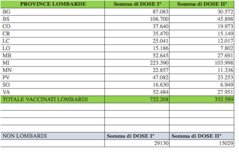 QUI L’ELENCO CON LE PERSONE VACCINATE PER COMUNE