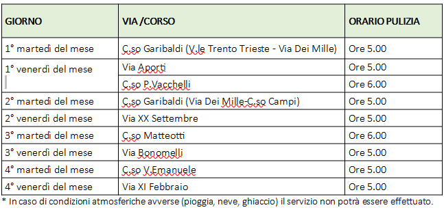 Verrà altresì attuata una ulteriore sperimentazione mediante l’utilizzo di cartelli mobili di divieto di sosta ed il conseguente passaggio di autospazzatrice, a cadenza periodica, nelle seguenti vie: