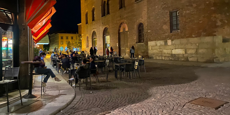 In particolare la situazione si ripresenta in maniera più evidente nel weekend. Nella serata di ieri, venerdì 7 maggio, nella zona di piazza della Pace erano diversi i tavoli ancora occupati anche poco prima delle 22, quando scatta il coprifuoco e la contestuale chiusura delle attività già vessate dai numerosi mesi di lockdown. Pur lontano dai numeri consueti, per evidenti ragioni legate alla pandemia e alle restrizioni conseguenti, si tratta di un primo segnale di ripartenza.