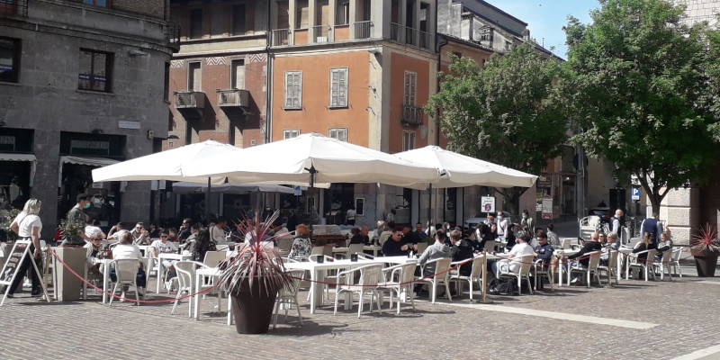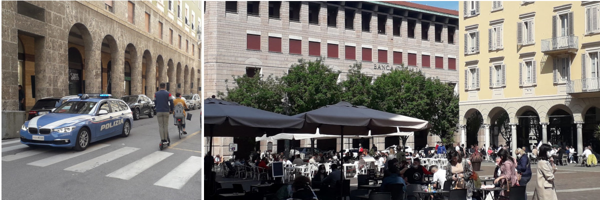 Questa mattina l’atmosfera è molto simile a quella di una normale domenica di primavera di epoca anti – Covid: molta gente a spasso, negozi in buona parte aperti e tavolini dei bar discretamente affollati. Continuano i controlli delle forze dell’ordine. gb