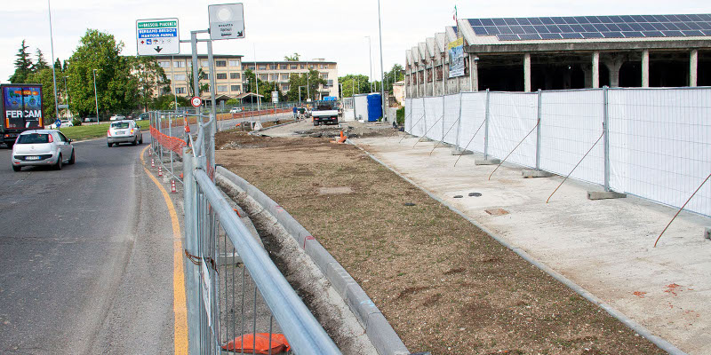 Sul versante verso via Castelleone è già visibile il nuovo marciapiede (anche qui, una pista ciclopedonale) e la piattaforma su cui sorgerà quello che finora è l’unico marchio certo, ossia il supermarket della Lidl.