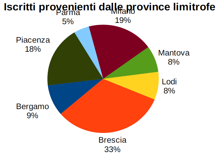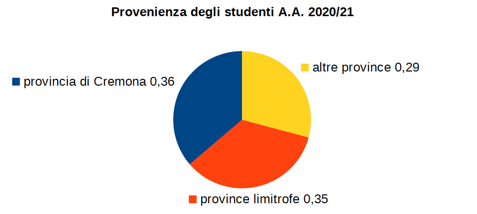 Brescia (11%), l’Istituto Superiore di Studi Musicali “Monteverdi” (3%) e l’Università degli Studi di Milano (3%). Gli studenti residenti in provincia di Cremona provengono per la maggior parte dai comuni di Cremona (302, il 40,5%) , Crema (38, il 5%) , Soresina (22), Castelverde (21) e Castelleone (20). Dalle province limitrofe (Bergamo, Brescia, Lodi, Mantova Milano, Parma e Piacenza) arrivano 710 studenti, il 35% del totale. La maggior parte risiede in provincia di Brescia (231 studenti, il 33%).