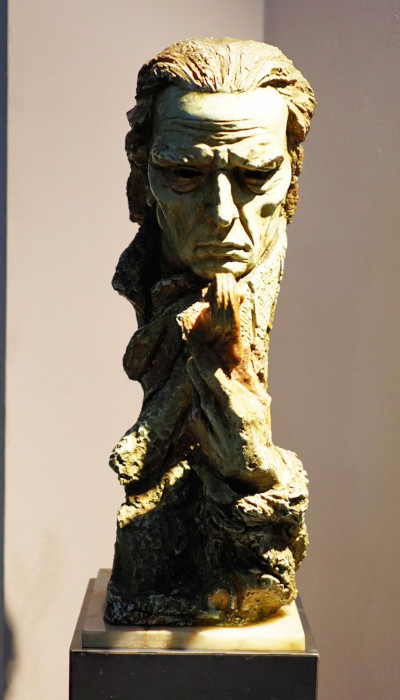 Quest’ultimo è, molto probabilmente, un bozzetto preparatorio per la scultura a mezzo busto oggi visibile nel giardino di Palazzo Affaitati. “A proposito del volto del sommo liutaio – spiega il figlio dell’autore, Alcide – si è rifatto ad alcuni tratti del suo viso, in quanto immaginava Stradivari come un uomo lombardo dai tratti decisi”.