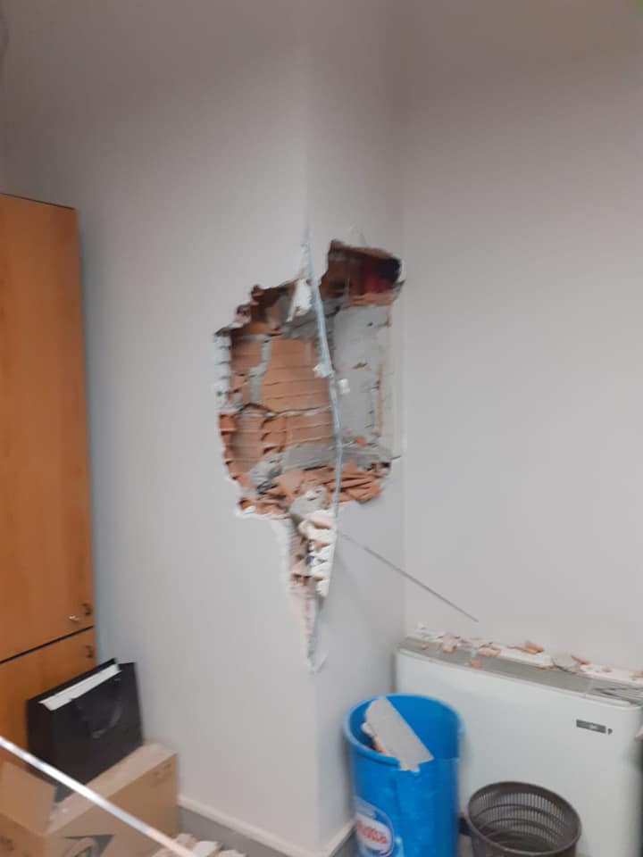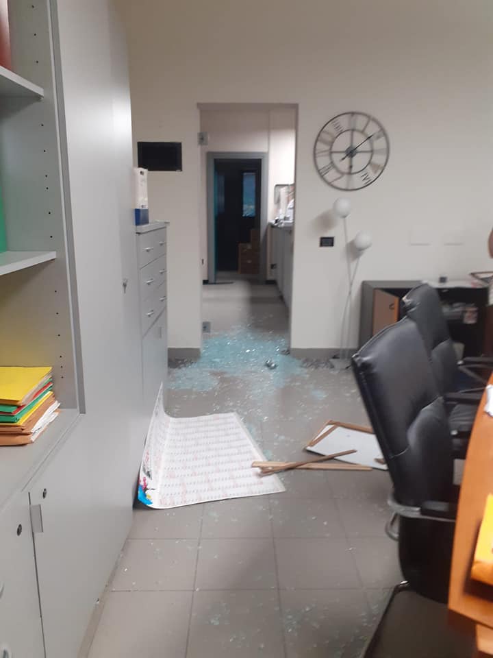 I ladri, muniti di picconi e martelli, hanno mandato in frantumi la porta vetrata che immette nello studio del presidente, dove c’è un’altra cassaforte, ma vuota.