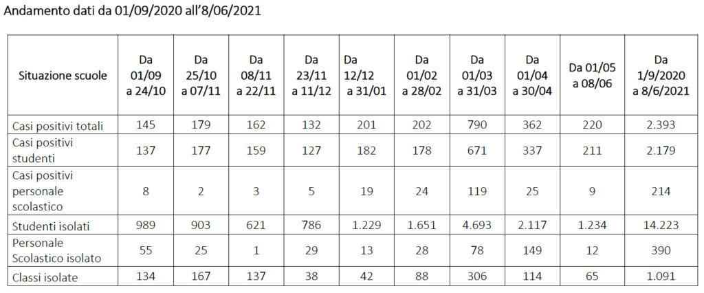 Al fine di “fronteggiare al meglio tale emergenza, la sorveglianza sanitaria, il contact tracing e l’utilizzo di strumenti digitali hanno rappresentato un aspetto cruciale nel contenimento della pandemia”. Il contrasto al Covid-19 “nel setting scolastico rappresenterà, anche per il prossimo anno scolastico, una sfida cruciale per l’intera società e la ripresa delle attività dovrà essere ulteriormente garantita da azioni di contenimento dei rischi da contagio, da strategie vaccinali mirate e qualità dei processi di formazione, apprendimento e diritto di istruzione nonché da offerta di testing ripetuti a scuola”.