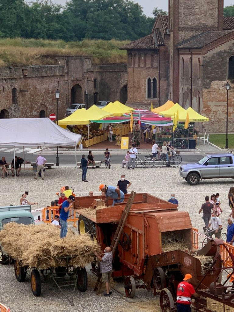Il mondo contadino si è ritrovato oggi, domenica 4 luglio, in piazza d’Armi a Pizzighettone per la Festa della Trebbiatura, evento organizzato con la regia del Cavallino Club Pizzighettone, il patrocinio del Comune di Pizzighettone e con la partecipazione di Coldiretti-Campagna Amica.