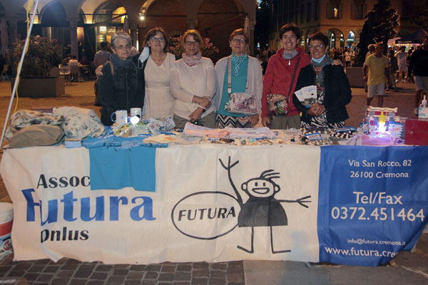 Volontariato e famiglia, i due temi portanti del secondo Giovedi d’estate, questa sera in centro a Cremona. Le iniziative per ravvivare strade e piazze, a cura delle Botteghe del Centro, hanno attirato molte persone, per nulla spaventate dal tempo incerto. Negozi aperti e tanti motivi di interesse: in piazza Stradivari le realtà del terzo settore, da BiGenitori, protagonista anche del progetto per la valorizzazione del commercio di vicinato, ad Accendi Il buio o Thisability (tradizionali partner dei Giovedì). E ancora Croce Rossa, Avis e Aido, Dal naso al Cuore (i clown dell’Ospedale), Siamo noi e Medea (per i temi legati alla salute); Futura e Associazione Occhi Azzurri, l’Associazione Famiglia Affidatarie “il Girasole” e quella intitolata ad “Osvaldo Marcotti” oltre ad Associazione Zoofili e il Gattile (Apac).
