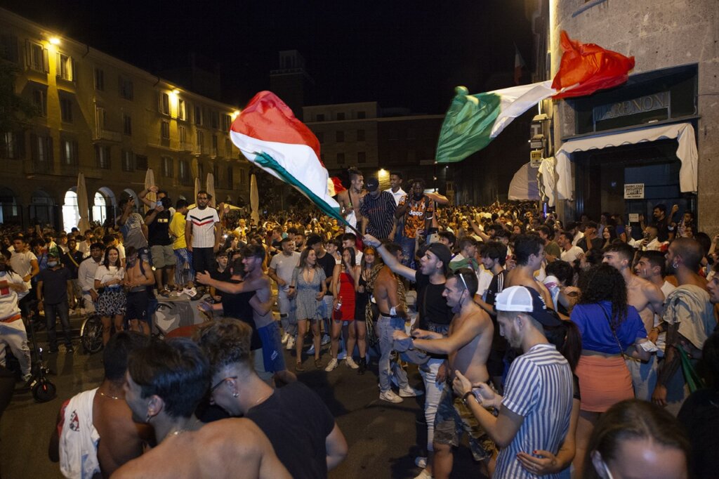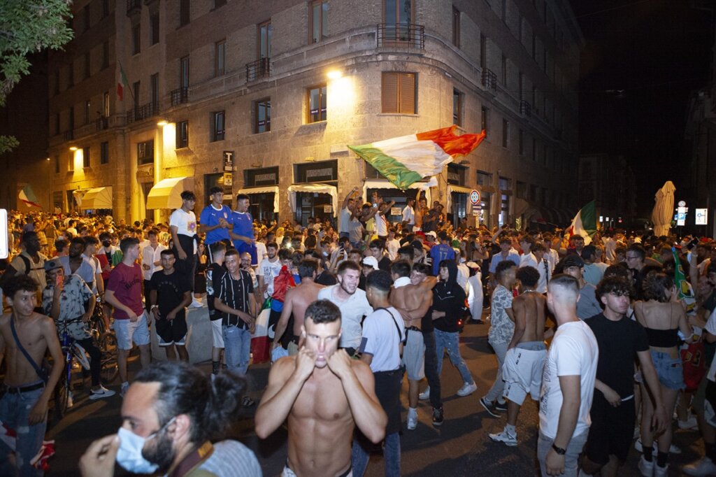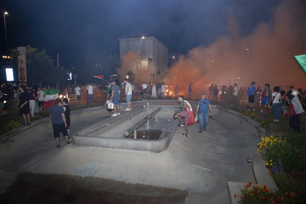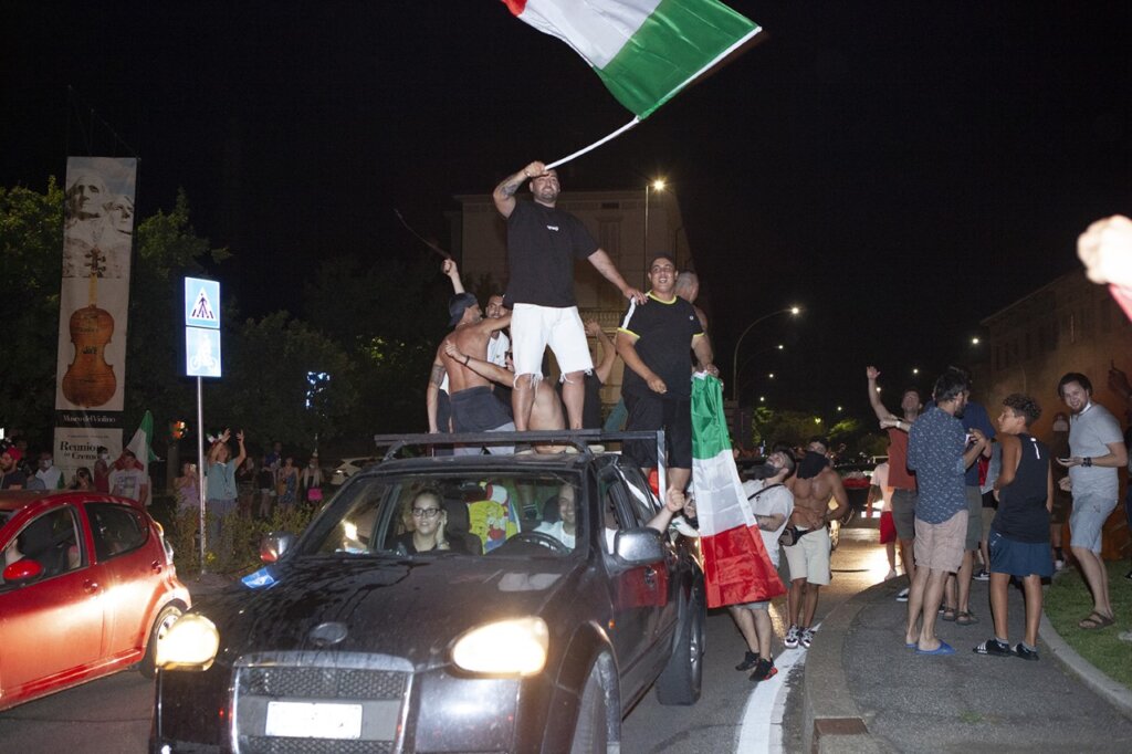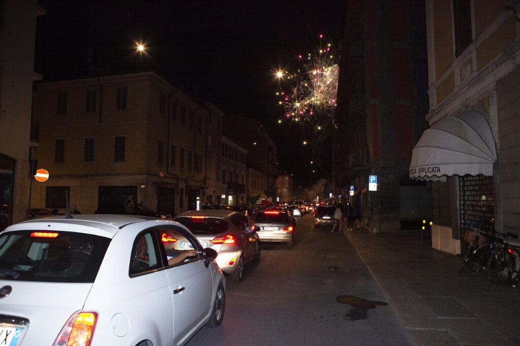 Fuochi d’artificio, petardi, idranti aperti, una città letteralmente impazzita per la conquista del titolo europeo da parte dei ragazzi di Mancini. La gioia ha prevalso sulla cautela anche a Cremona: pochissima la gente con mascherina in piazza Stradivari e Cadorna, due punti focali della festa che si è protratta fino a tarda notte. gb