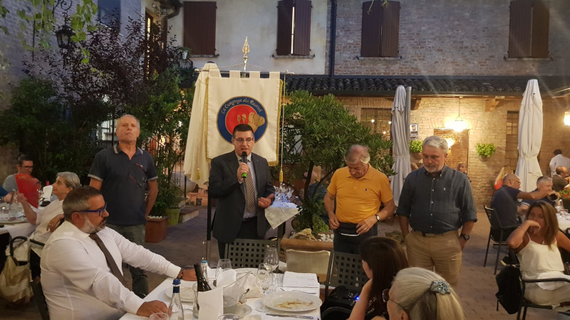 D’altro canto la cena è stata anche l’occasione per celebrare i 35 anni di nascita del gruppo, che ha ricevuto un prezioso e bellissimo regalo: il gonfalone con il logo della Congrega, ricamato a mano dalla soresinese Mirena Fiameni.