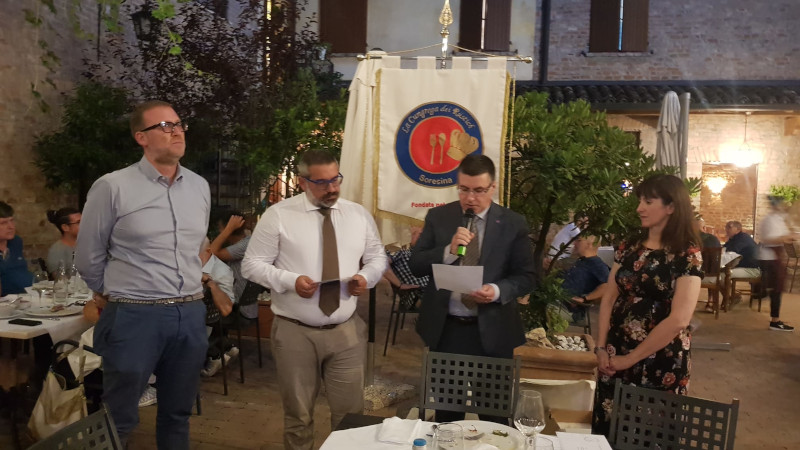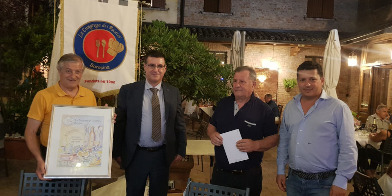 D’altro canto la cena è stata anche l’occasione per celebrare i 35 anni di nascita del gruppo, che ha ricevuto un prezioso e bellissimo regalo: il gonfalone con il logo della Congrega, ricamato a mano dalla soresinese Mirena Fiameni.