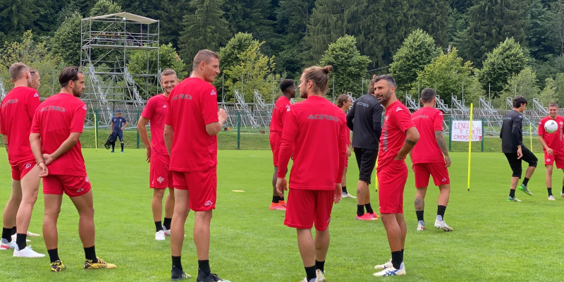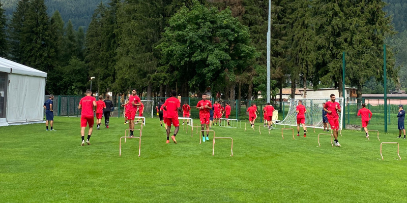 Primo allenamento per la Cremonese sul Campo Sportivo Comunale Pineta di Pinzolo, dove i grigiorossi svolgeranno il ritiro precampionato in vista della nuova stagione di Serie B. Giocatori e staff hanno raggiunto la località montana, dove rimarranno fino al 6 agosto, nella mattinata di oggi, lunedì 26 luglio, e nel pomeriggio hanno effettuato la prima seduta agli ordini di mister Pecchia. Al termine dell’attivazione, il gruppo ha svolto riscaldamento atletico, esercitazioni tattiche e sul possesso palle e parte atletica. Domani è in programma un doppio allenamento.