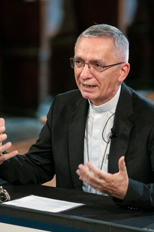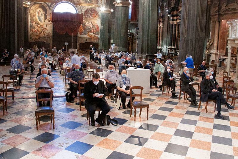 Nel massimo tempio cittadino sono stati analizzati diversi aspetti della celebrazione eucaristica, alla luce dei cambiamenti in corso nell’epoca recente. Don Angelo Lameri, docente di Liturgia alla Pontificia Università Lateranense, è intervenuto sul Messale romano. “Se è tardivo parlare di novità del Messale perché la terza versione italiana è in uso da mesi, al contempo è prematuro fare un’analisi circa la sua recezione. Certamente ha introdotto qualche variazione nei testi, che ha contribuito a risvegliare le nostre assemblee facendole uscire da una certa routine. Va ricordato però che le assemblee sono ancora profondamente segnate dal Covid-19, dunque l’auspicio è anzitutto che l’assemblea possa ricostituirsi attorno alla Parola di Dio” ha spiegato don Lameri.