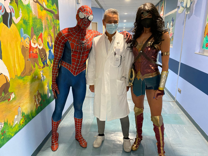Tutto è iniziato quando lui, da bambino, venne ricoverato per molto tempo al Gaslini di Genova. È lì che Mattia ha sempre sognato di vedere entrare dalla finestra uno dei suoi supereroi preferiti. Con lui anche Giada, nei panni di Wonderwoman. Un giro non solo in pediatria ma anche al pronto soccorso pediatrico di Cremona.