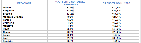 Mercato del lavoro in ripresa dopo la contrazione scandita dai lockdown. In Lombardia l’incremento dell’offerta è nell’ordine del 25%, regione locomotiva d’Italia. E se Milano è ai vertici nazionali, la provincia che fa segnare la crescita maggiore è quella cremonese, +62,6% nel primo semestre 2021. Questi i dati diffusi dall’osservatorio Infojobs, piattaforma per la ricerca online che ha registrato 73mila proposte d’impiego in Lombardia da gennaio a giugno. Si tratta del 31% del totale nazionale.