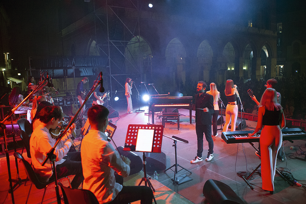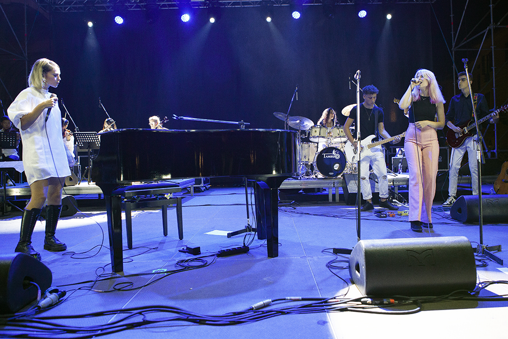 Affidati agli studenti i primi due brani, “Io non abito al mare”, poi riproposto anche nel bis con la stessa Michielin, e la più ritmata “Leoni”; mentre “Distratto” segna l’ingresso in scena della cantautrice veneta che ha poi accompagnato la band per quasi tutte le altre canzoni, assumendo di buon grado anche il ruolo di vocalist. “Sono colpita dalla bravura di questi ragazzi”, ha detto tra una canzone e l’altra. “Ed è straordinario il lavoro di questa equipe che li segue con passione, consentendo loro di fare emergere il loro talento … a me è capitato di avere avuto insegnanti che invece mi hanno schiacciato”, ha aggiunto la cantautrice, giovanissima anche lei, 26 anni, vincitrice 11 anni fa di X Factor e da allora cresciuta fino a diventare una delle voci più originali del panorama discografico.