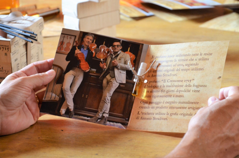 A Firenze sarà presentata sia la Fragranza per ambiente che quella da uomo ispirata alle vernici dei liutai, il nome infatti prende ispirazione dal dal celebre violino costruito da Antonio Stradivari nel 1715.
