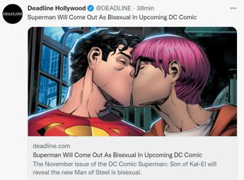 Superman sventolerà la bandiera dell’orgoglio gay il 9 novembre, quando verrà rivelato che il supereroe è bisessuale nel prossimo numero della DC Comics Superman: Son of Kal-El. Lo riporta il sito Deadline. L’attuale Superman è Jon Kent, figlio di Clark Kent e Lois Lane. Nelle tavole del fumetto, i lettori possono conoscere il nuovo interesse amoroso del giovane Kent: Jay Nakamura, un giornalista, naturalmente. Il fumetto mostrerà l’amicizia di Jon e Jay che diventa romantica dopo che il giornalista si prende cura dell’Uomo d’Acciaio che si sente mentalmente e fisicamente esaurito dal tentativo di tenere tutti al sicuro.
