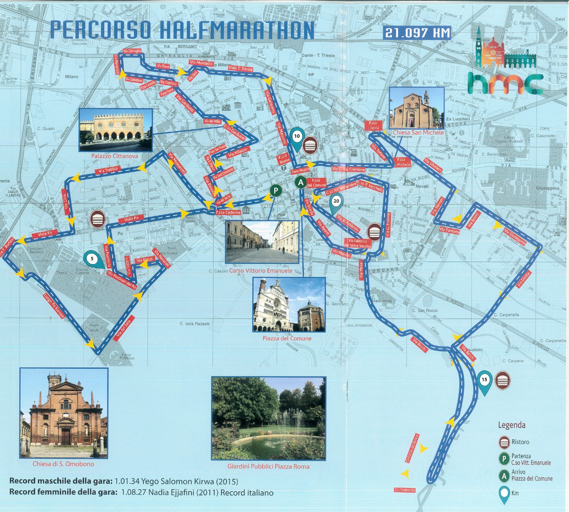 Domenica 17 ottobre si terrà la XX edizione della Mezza Maratona di Cremona organizzata dal Cremona Runners Club con la collaborazione e il patrocinio del Comune di Cremona. Il programma della manifestazione prevede la partecipazione prevista di circa 2000 atleti secondo le seguenti modalità: ritrovo dei partecipanti alle ore 08,00 a in corso Vittorio Emanuele II nel tratto compreso da via Verdi a via Cesari, con successiva partenza da corso Vittorio Emanuele II in corrispondenza del civico 48/50, alle ore 09,30 e arrivo previsto dei primi concorrenti alle ore 10,35 circa a Cremona, in piazza del Comune, dove gli arrivi proseguiranno fino alle ore 12,30 circa (per il percorso della gara si veda piantina allegata).