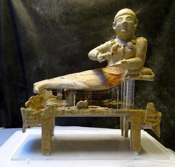 Torna a splendere, dopo un delicato e complesso intervento di restauro realizzato dalla ditta Co.Re.Co con il coordinamento del Servizio Restauro del Museo, uno dei reperti più emblematici delle collezioni del Museo Nazionale Etrusco di Villa Giulia a Roma, raffigurante una donna etrusca vissuta oltre 2500 anni fa. È un’urna cineraria in terracotta risalente alla seconda metà del VI secolo a.C., particolarissima nel suo genere, poiché raffigura una figura femminile distesa su un kline, l’antico letto conviviale su cui si distendevano gli invitati ai banchetti. Doveva con molta probabilità contenere i resti di una donna etrusca dell’alta società, vissuta e morta nell’antica Caere, l’attuale Cerveteri. Nella sua fattezza sontuosa e ricercata restituisce un’immagine molto precisa di come amavano essere rappresentate le donne del tempo: accessori curati e gioielli vistosi denotano lusso e desiderio di esibire il proprio status sociale.