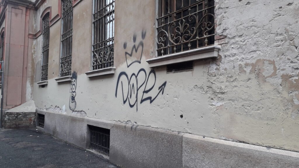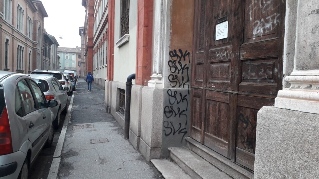 Tra gli edifici più presi di mira c’è palazzo Affaitati, sede della Biblioteca e della Pinacoteca, il lato attualmente più imbrattato è quello verso via Faerno. Indecorose anche le scritte sulla facciata della scuola primaria Realdo Colombo.