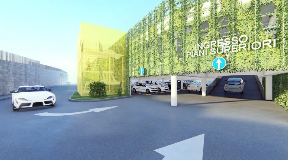 Ma la vera novità è che una volta terminato il secondo lotto, ve ne sarà un terzo a completamento del progetto, che prevederà la realizzazione di una facciata verde, in senso verticale, della nuova struttura, che farà da schermo. Per realizzarla, si legge nel progetto, si è scelto il falso gelsomino, tipologia di vegetazione che non ha particolari esigenze ed è dotata di un’ottima resistenza, in modo da richiedere una manutenzione minima. Le piante verranno messe a dimora dentro apposite aiuole che costeggeranno il parcheggio e si arrampicheranno lungo la struttura metallica, ma anche in una fioriera che verrà realizzata sul fronte di via della Vecchia Dogana, in modo che vi sia una copertura su entrambi i lati.