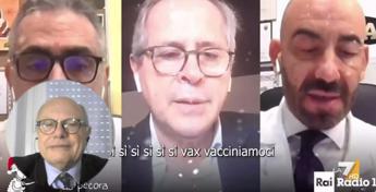 “Il tempo è poco e forse vale la pena di parlare di cose serie…”. Il professor Massimo Galli non sembra entusiasta davanti all’esibizione canora dei suoi colleghi. Matteo Bassetti, Andrea Crisanti e Fabrizio Pregliasco si sono trasformati in cantanti per Un giorno da pecora (video), intonando un inno ai vaccini sulle note Jingle Bells.