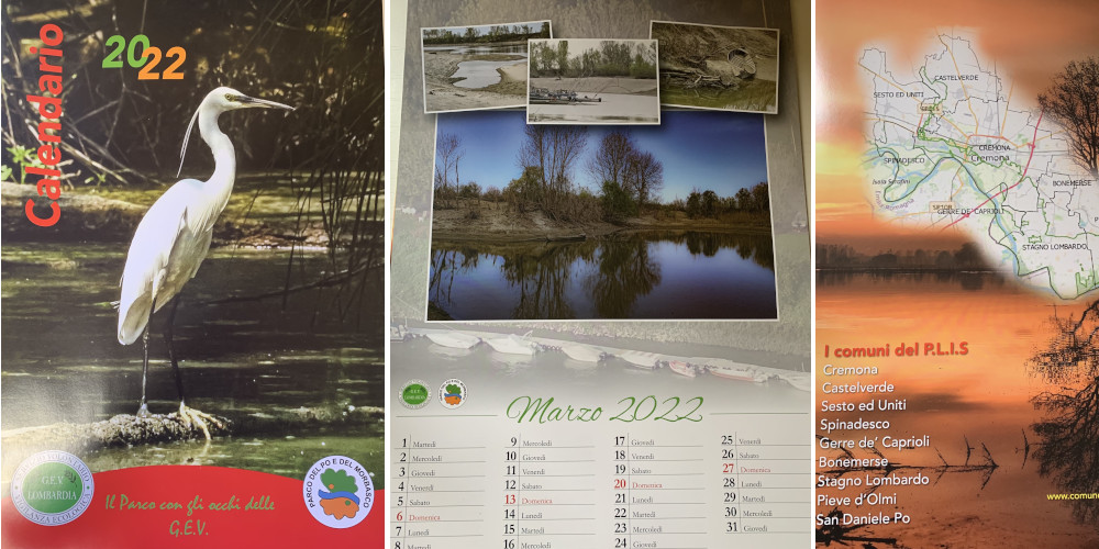 Una raccolta delle immagini di alcuni tra gli scorci più suggestivi del Grande Fiume, il Po, scatti realizzati dalle Gev (Guardie Ecologiche Volontarie) nelle varie zone dei Comuni che fanno parte del Plis (Parco Locale di Interesse Sovracomunale) del Po e del Morbasco nel susseguirsi delle stagioni. Così è stato realizzato il primo calendario della Guardie Ecologiche Volontarie che accompagnerà il succedersi dei mesi per il 2022.