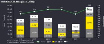 EY osserva come “l’elevata attività transazionale è stata una delle risposte alla trasformazione dei modelli di business e delle operations delle aziende, accelerata dalla pandemia, che ha innescato processi di riorganizzazione supportati anche da acquisizioni”: inoltre “una rinnovata attenzione ai temi della sostenibilità, nel senso ampio del termine, ha contribuito a spingere ulteriormente la dinamica” di fusioni e acquisizioni “specie per efficientare l’impatto dai cicli di produzione e per allargare la gamma di prodotti per soddisfare le nuove esigenze dei consumatori”.